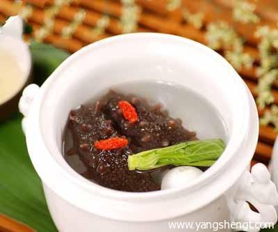 2、海參30克、黑芝麻60克燉服。