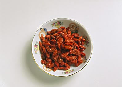 枸杞子100克,生地30克。將杞子、生地焙干、研末、混勻,每取10克,每日3次,溫開水或用白酒適量沖服,連續1月。可補肝腎,去黑斑。