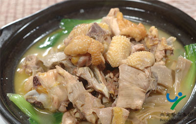 制法:將雞洗凈,切塊,與老桑枝同放鍋內(nèi),加適量水煲湯,調(diào)味。