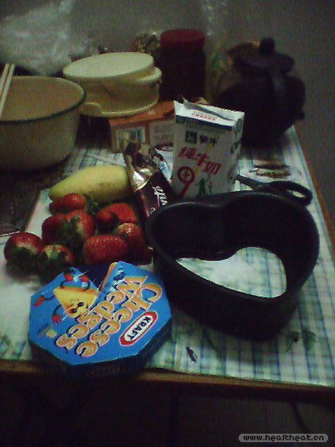 首先準備的材料有:雞蛋4個,低筋面粉適量 牛奶 卡芙三角芝士 有底心形模具 巧克力