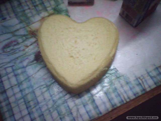 第六:準備六寸的心形蛋糕模具,把模具涂上一層花生油,把拌好的面糊裝在模具里,再放入電飯鍋里,按電源,待跳到保溫狀態過幾分鐘再按,這樣大概按4次蛋糕就熟了,你可以用牙簽試一試,用牙簽插入蛋糕,如果拔出來的牙簽沒有粘到面糊就熟了