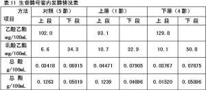 取250kg混合糟,接入固體生香酵母10.6億/g,10kg分別于發酵池的上層和下層7天發酵試驗(見表11)。