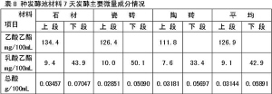 從表8可以看出,在7天發酵中,酯、酸含量均有上升,石材含量最高。
