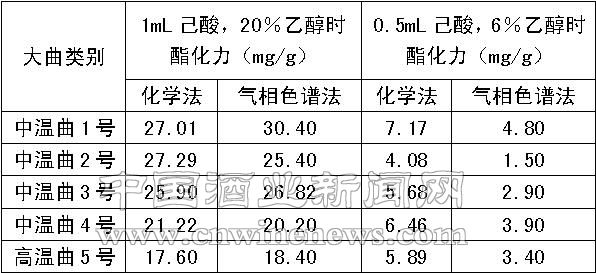白酒香味是以酯香為主的復合體。白酒釀造過程中,酯酶的作用是使一個酸元和一個醇元結合,脫水生成酯。目前,已確定能生成酯化酶的酯化菌在大曲中有細菌、霉菌、酵母菌等。酯化酶是脂肪酶和酯酶的統稱,它與短碳鏈香酯的生物合成有關。對大曲而言,酯化力是反映大曲質量優劣的重要指標之一。以己酸乙酯計,酯化力是1g干曲在30—32℃反應100hr所生成的己酸乙酯的毫克數。