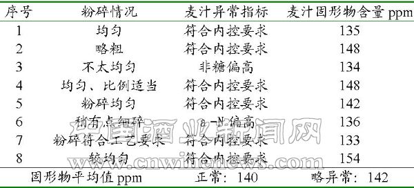 結果表明,粉碎均勻度、粗細比例對麥汁固形物含量的影響不是很大。