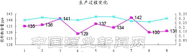 很明顯,固形物含量與整個生產過程的變化沒有直接關系,這也表明固形物含量的高低雖來源于糖化生產過程,但固形物含量高低對以后成品的指標變動沒有任何關系。