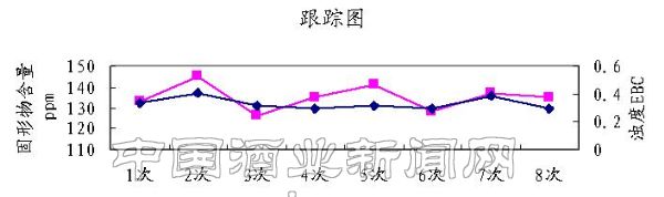 還可從固形物含量的高低與成品啤酒指標的波動進行跟蹤分析(見圖5)。