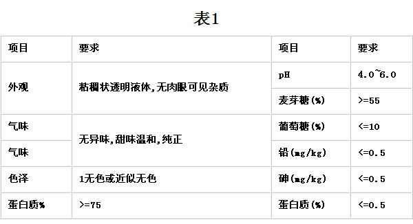 1.1.2 玉米糖漿理化衛生指標(見表1)。