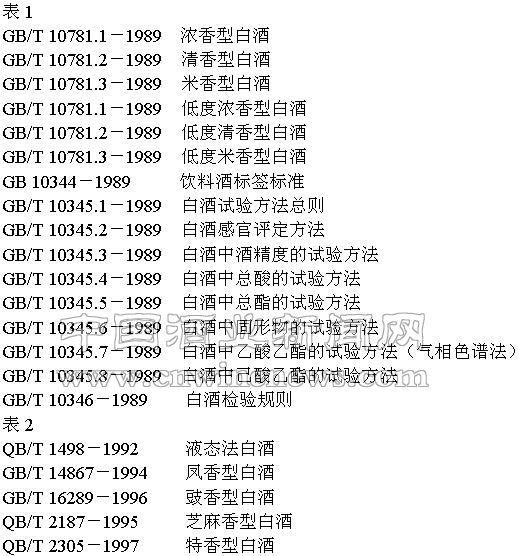 上世紀80年代末,根據行業的發展和需要,又分別制定了白酒產品、分析方法、檢驗規則、飲料酒標簽等16項國家標準(表1)。