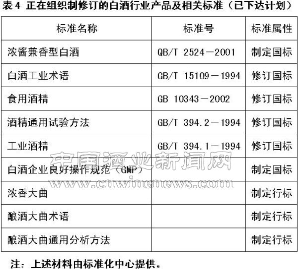 飲料酒國家標準計劃項目26項,白酒類21項;