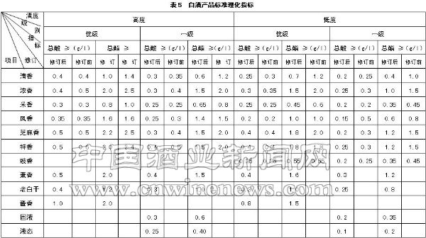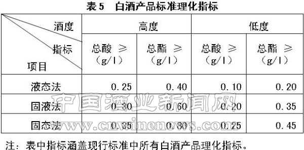 筆者認為,白酒產品標準理化指標留下(或新制定)三個標準即可,即:液態法、固液法、固態法(名稱可商定),理化指標見表6。