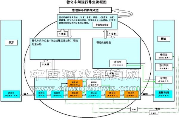 根據作業流程圖對實際操作進行詳細說明,如糖化班糊化、糖化崗位總體工作流程(以手動糖化設備為例)描述為:糖化班糊化操作工根據當天生產鍋次按時下料,并及時填寫《糖化工藝原始記錄》。糊化操作工在下料時要注意大米的粉碎度,如發現異常要及時與粉碎機手取得聯系;下料完成后,應版權中國酒業新聞網通知粉碎機手;在糊化操作時要嚴格按照工藝文件執行,并按操作規程操作,出現工藝問題、設備問題應及時與車間主任和維修工取得聯系,并反映情況;與糖化操作工隨時保持溝通,共同完成糊化、糖化操作;按時添加輔料,并填寫《糖化輔料添加記錄》。