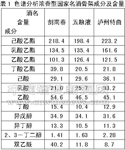 國(guó)家名酒因生產(chǎn)歷史悠久,其成品酒風(fēng)格突出,骨架成分量比穩(wěn)定,具有很強(qiáng)的指導(dǎo)意義。