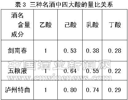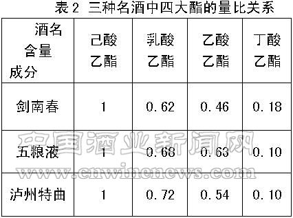 二、濃香型國(guó)家名酒中骨架成分的量比關(guān)系(表2、表3)