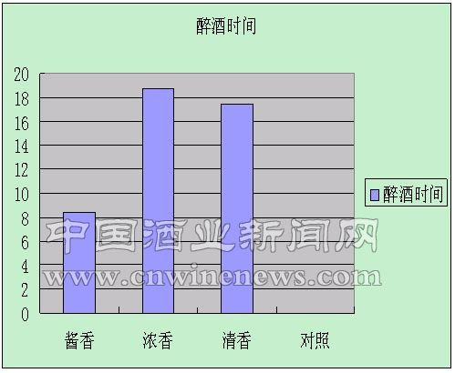 ①由于各香型酒釀造工藝不同,其酒體中各微量成分的化學構成亦不相同,從而對小白鼠的醉酒效果不同。