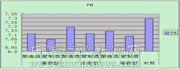 ②從3個圖表的共同趨勢中我們可以看出,釀造酒醉酒時間長,醒酒時間短。同時,從圖6看出喝酒后小白鼠的pH出現了不同程度的降低,而液態勾兌酒比固態發酵酒降低更多。說明液態勾兌白酒從表觀上無論化學組成多么一致,風格與風味多么相近,仍無法達到固態釀造酒的質量,進一步說明了固態發酵酒是在其各自獨特工藝下發酵釀造而成的,是任何其他方法仿制不出來的。