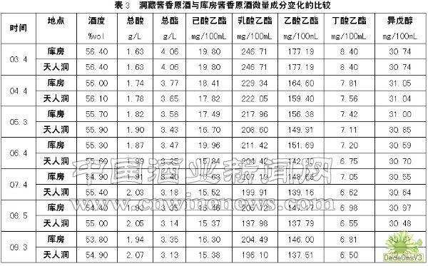由表2、表3看出,酒度方面,山洞中6年降低1.5度,平均每年降低0.25度;庫房中6年降低2.6度,平均每年降低0.43度。這是由于洞中濕度大,溫度較為恒定,減少了酒精分子的揮發,從而也減少了浪費。