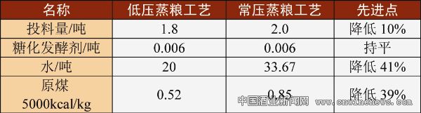 5.低壓蒸糧清潔生產(chǎn)技術(shù)與傳統(tǒng)技術(shù)參數(shù)比較(表一)