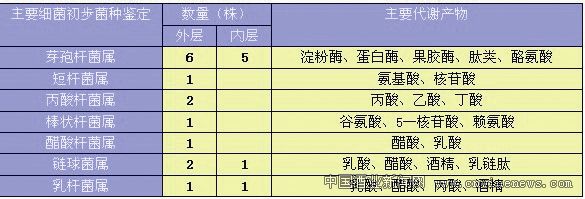 2.2徐坊芝麻香專用大曲外層和內層的細菌初步鑒定及主要代謝產物分析