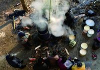 2.取出,攤冷,當溫度降到25℃左右時,就可加入酵母液,拌勻后裝入發酵池里。每裝一層,隨即用腳踩實,直到池深的4/5為止。