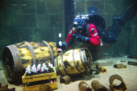 葡萄酒的理想儲藏溫度為12℃左右,而深海水溫常年保持5~8℃的恒定低溫,雖然可能會使葡萄酒產生酒石酸晶體,但在理論上可延緩香檳的衰老速度。深海缺氧更降低了香檳遭受氧化的幾率,潮濕和黑暗的深海環境也是理想的“儲藏”條件。加州納帕谷的Mira酒莊在去年啟動了“Aquaoir”計劃,將自家生產的一批葡萄酒的一部分沉入南加州查爾斯頓港的水底之中陳釀數月,然后再取出,與在陸地傳統酒窖陳釀的同一批酒進行對照。