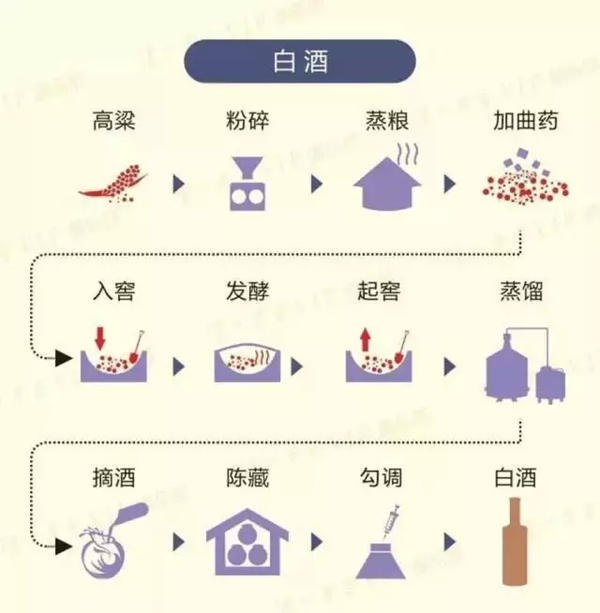 6、蒸餾。發酵成熟的醅料稱為香醅,它含有極復雜的成分。通過蒸酒把醅中的酒精、水、高級醇、酸類等有效成分蒸發為蒸汽,再經冷卻即可得到白酒。