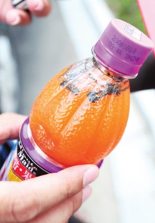 張阿姨在省城黃山路開了個便利店,前兩天,張阿姨在遞給顧客一瓶“美汁源”熱帶果粒果汁時,顧客驚叫起來:“這瓶果汁里面怎么有黑斑?”