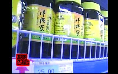 杭州市一些超市銷售的摻假洋槐蜜(央視截屏)