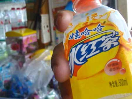 10月23日中午,懷化一位姓李的消費者在懷化市三角坪農業銀行旁的一家商店,給小孩子買了一瓶娃哈哈冰紅茶(價格3元/瓶),由于當時打開瓶蓋給孩子喝沒有留意,在小孩子喝到三分之二的時候,他突然發現飲料瓶底竟然滿是象蟲子似的沉淀物,這讓李姓消費者嚇了一跳。他趕忙跑回該經銷店詢問商店老板,質疑該冰紅茶是偽劣產品。由于當時商店用電話找到批發經銷商的老板在電話中態度很不友好,認為無關緊要不愿來現場處理,并要求消費者自己找廠家處理,消費者很是氣憤,遂向記者投訴。