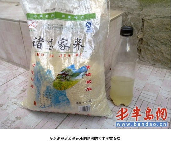 20日下午,又一位消費者楊女士反映說,她看到了半島網友發的樂購大米出現問題的帖子,她也遇到了這種情況,產品也是“諸葛米家”的大米,問題同樣是發霉的問題,淘出的米水發黃發綠,現在一直扔在家里,她打算這幾天就找樂購討一個說法。