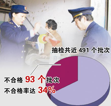 5月12日,湖北省宜昌市質監局公布食品小作坊專項檢查結果:對宜昌地區小作坊抽檢的近491個批次中,不合格93個批次。散裝白酒的抽檢批次不合格率達到34%,令人擔憂。