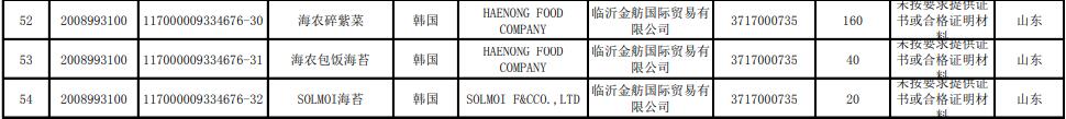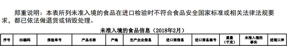 對以上未準入境的食品均已在口岸退運或銷毀。