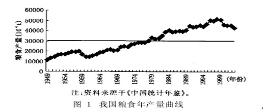 自建國以來,我國糧食生產不斷發展,產量不斷提高。見圖1:(注:此圖來源于自然資源學報《基于EMD的我國糧食產量波動及其成因多尺度分析》一文)