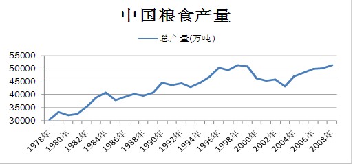 糧食是人類生存最基本的生活消費品,一個國家的糧食問題是關系到本國的國計民生的頭等大事。我們知道,農業是國民經濟發展的基礎,糧食是基礎的基礎,因此糧食生產是關系到一個國家生存與發展的一個永恒的主題。建國以來我國的糧食產量多次出現了波動,這不僅制約了國民經濟的發展,而且給糧食生產者和消費者都帶來了極為不利的影響。中國的糧食產量波動對糧食價格的影響重大,意義深遠。分析近幾十年來的中國糧食產量并從中發現一些規律,對我們認識目前的糧食價格及未來走勢有重要幫助。