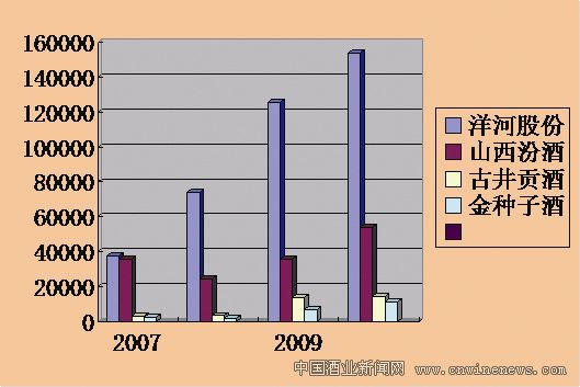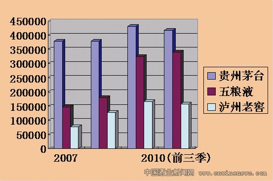表1:一線白酒上市公司2007年—2010年(前三季)凈利潤(萬元)增長圖