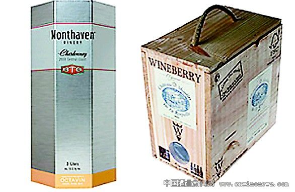 另外一種葡萄酒包裝是木盒裝。Wineberry America的Berry Boxes所采用的木盒是以可持續(xù)森林的木材精心制成,當(dāng)葡萄酒喝完后,這些包裝還可用作喂鳥容器或午餐盒。其產(chǎn)品產(chǎn)自法國(guó)波爾多、勃艮第、薄若萊和羅納河谷等產(chǎn)區(qū),于去年7月份在精品葡萄酒商店面市,售價(jià)為33美元—49美元,銷售盛況令人吃驚。與傳統(tǒng)的紙盒裝相比,這種木盒帶有可分解的塑料襯里,當(dāng)葡萄酒倒出時(shí),空氣會(huì)被自動(dòng)排出,防止氧化。