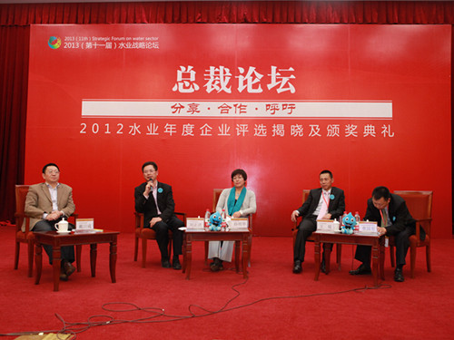回顧水業市場化改革十余年的成績,我國水業市場體系、投融資、水務企業運營效率、服務質量及專業化水平等方面均取得突出的成績,水務行業正面臨著升級轉型。那么在新形勢下,成長歷程、業務領域、發展實力各不相同的眾多水企該如何發展?如何才能形成推動水業的產業合力?在“2013(第十一屆)水業戰略論壇”上,中國水務投資有限公司總經理劉正洪、蘇伊士環境執行副總裁孫明華、中環保水務投資有限公司總經理王堤、首創股份副總經理/新環保能源控股有限公司總裁曹國憲,與主持人北京碧水源科技股份有限公司總經理戴日成一道,共聚總裁論壇第一回合,與參會人員分享水企經營之道。