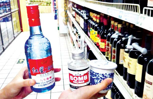 比起啤酒類“小酒”的屈指可數,白酒類“小酒”可謂是遍地開花了。跟幾年前只有二鍋頭、勁酒等有小包裝不同,現在白酒品牌推出的“小酒”除了“小”以外,更注重包裝的時尚和潮流,而在命名上也更加注重“討好”年輕消費者。記者在崇文門樂天瑪特超市注意到,“炸彈二鍋頭”、“葉問”、“小蘭花酒”等“小酒”頗受消費者的歡迎,同樣是二鍋頭,炸彈二鍋頭的銷量比普通二鍋頭的銷量多了不少,現場工作人員正在補貨。