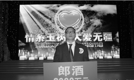 晚上11:30左右,當(dāng)眼眶潮濕的主持人把麥克風(fēng)遞到我眼前,我說:“郎酒與災(zāi)區(qū)人民手拉手,心連心,在一起!祝愿玉樹明天更美好!”
