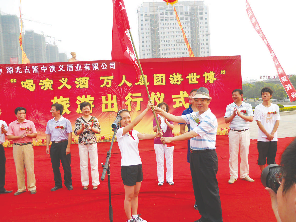 7月30日,湖北古隆中演義酒業(yè)“喝演義酒 萬人組團游世博”大型旅游出行儀式在諸葛亮文化廣場隆重舉行。湖北古隆中演義酒業(yè)有限公司董事長兼總經(jīng)理鄒遠東、副董事長兼財務總監(jiān)熊光英、副董事長兼技術總監(jiān)劉麗萍、副總經(jīng)理柳亞明、鄭慶軍、張億、張海江、沈延華等領導出席出行儀式。