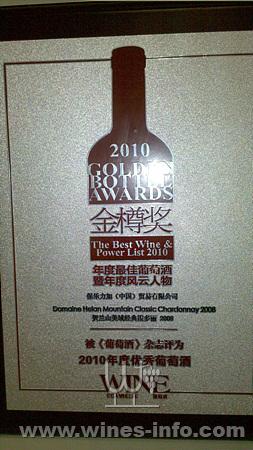 據悉,“賀蘭山”葡萄酒在由《葡萄酒》雜志發起并主辦的“金樽獎——2010年度最佳葡萄酒暨年度風云人物評選”中榮獲“2010年度優秀葡萄酒”殊榮。自2009年9月,至此約一年的時間里,“賀蘭山”共計在5個國家和地區的16個葡萄酒專業比賽中共獲53個大獎。