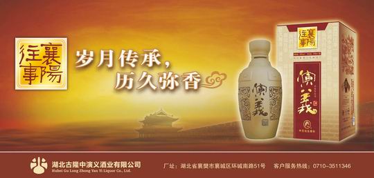 五十年的“襄江水”,歷久彌香,傳承了襄樊幾代人的記憶。五十年的歲月積淀,孕育了全新的“襄陽往事”酒。2011年將至,湖北古隆中演義酒業有限公司傾力打造的“演義”系列產品中的又一款經典之作——“襄陽往事”酒,以其穩定卓越的品質、新穎獨特的包裝、寓意深遠的文化內涵,力求給消費者全新的飲酒體驗。“襄陽往事”酒,是繼“襄江特曲”、“襄陽人家”后又一款極具襄樊特色的標志性產品。“襄陽往事”,極具故事感的酒名,更能引發百姓的回憶和共鳴;古舊的包裝外盒,順應了當下低碳環保的理念,凸顯歷史的厚重感。外盒側身印制的古襄陽風俗圖,線條清晰,人物栩栩如生,襄陽古城的風土人情、2800年的歷史神韻凝聚其中;傳統陶瓶包裝,不僅能夠促進白酒自然老熟,使酒體更加醇正,同時契合了“歲月傳承、歷久彌香”的產品定位,使“襄陽往事”酒更具珍藏價值。