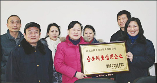 12月30日,襄城區工商局領導親臨古隆中演義酒業公司,頒發第十屆湖北省守合同重信用企業獎牌和證書,并授