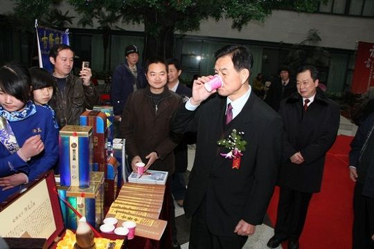 湖北省人大副主任羅輝在頒獎典禮前品嘗演義酒