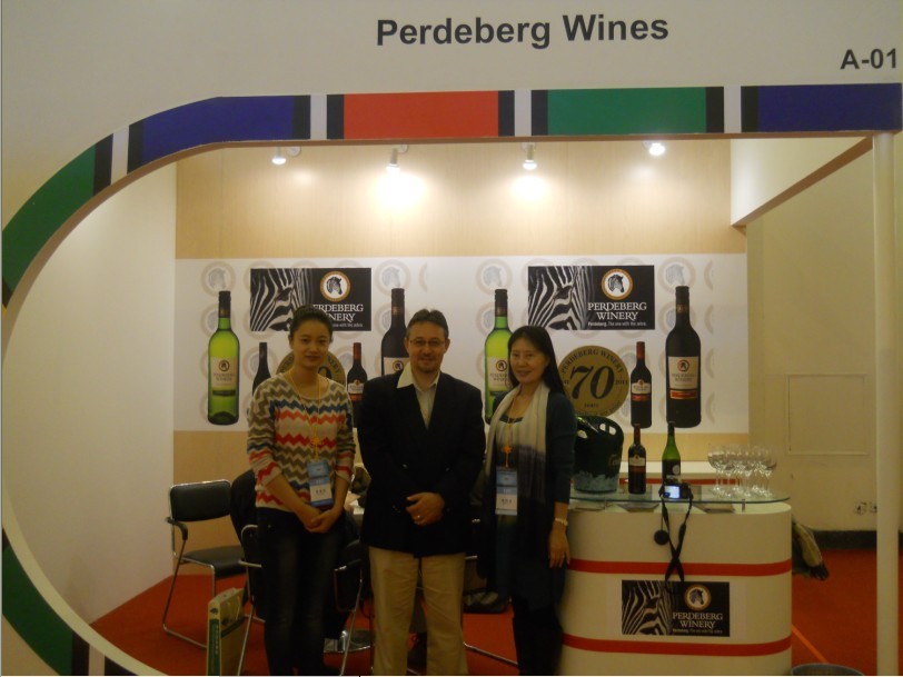 圖片為開幕式現場畫面。 圖片為伯特萊酒莊CEO哈雷德(中)與公司總經理吳華(右)、公司客服經理張嘉宇(