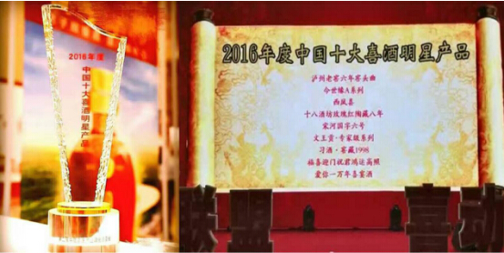 這五年來,先后榮獲28項榮譽,得到五糧液股份公司、社會各界、經銷商的認可:誠信經營示范単位、中國白酒十大品牌運營商、全國酒類優秀營銷商(企業)、中國酒類行業最具創新力企業、 五糧液2012年優秀品牌運營商、中國酒類行業消費者最放心的中國文化名酒、五糧液2013年優秀經銷商、中國名酒大眾酒-成長榜樣、最受消費者喜愛品牌、最具投資價值品牌、中國十大喜酒明星產品”、五糧液集團“2016年度優秀運營商·品牌拓展獎”、消費者喜愛的中國名特優品牌,以及多次獲得的全國食品博覽會優質產品金獎......每一項都凝聚著五糧液股份福喜迎門酒業人的心血、付出、信念、執著、努力和汗水。