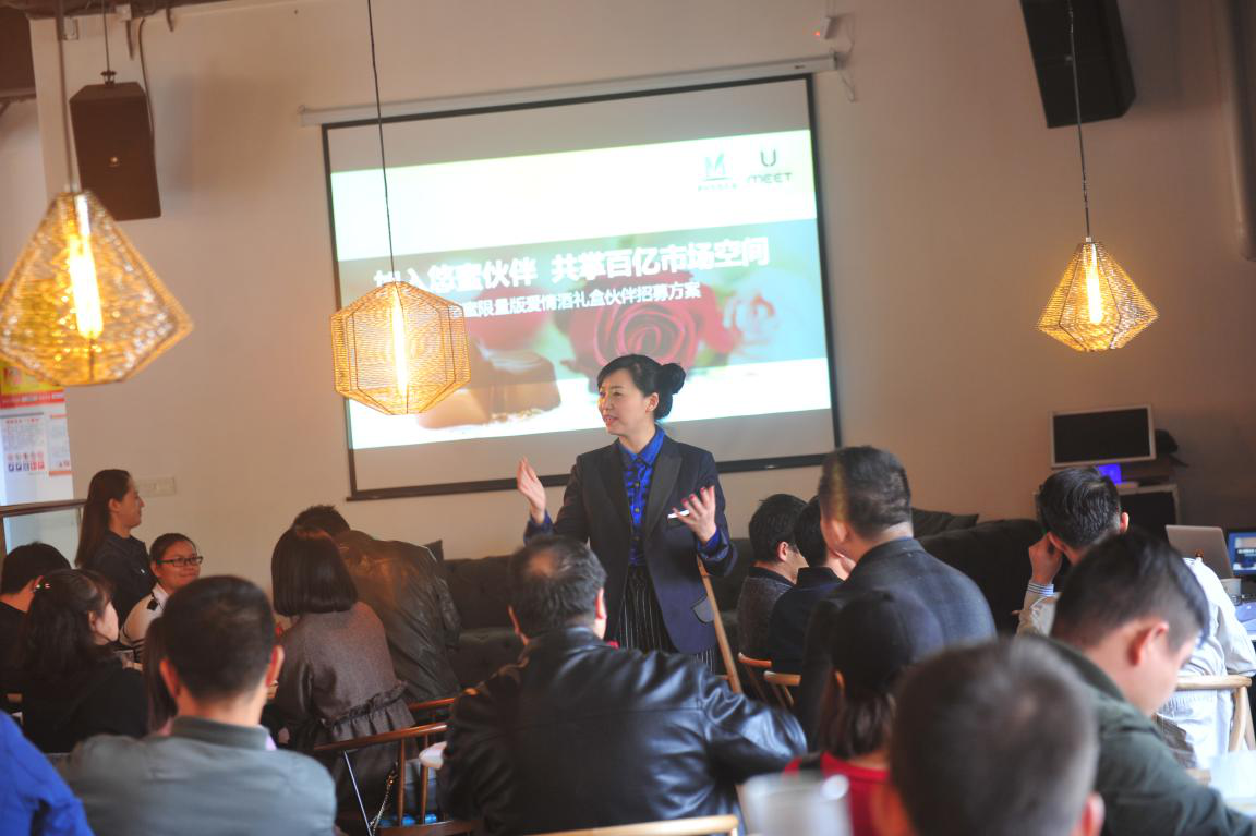 生態農業公司副總經理、銷售公司總經理余英主持了本次大會,并向與會人員介紹了企業品牌及產品的現狀與前景,對即將上市的新品“悠蜜愛情主題酒”進行了詳細的解讀。