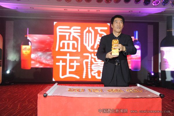 圖為北京恒億盛世葡萄酒有限公司董事長石福利宣布該公司獨家經營的“恒億盛世伊莎貝拉”系列葡萄酒正式面市。