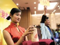 昨天下午,一批收藏級茅臺酒第一次在廣州公開拍賣。當中一套81瓶的世博全套(包括和平使者)茅臺酒以285萬元落槌。相比北方市場的火爆,理性的廣州人在茅臺拍場上并不冒進。