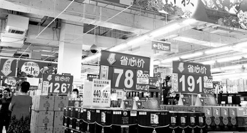 記者走訪中百、武商、沃爾瑪等商超,看到幾十款中端白酒堆放在一起,紛紛降價促銷,價格區間從每瓶30多元到每瓶二三百元不等。許多中端白酒采用兩瓶一組或整箱一起的方式進行銷售,實行降價和“買立減”、“買二送一”的促銷活動。“中秋前兩天,我們將拿出暢銷產品做五折活動。”杏花村汾酒湖北市場總代理李斌表示。